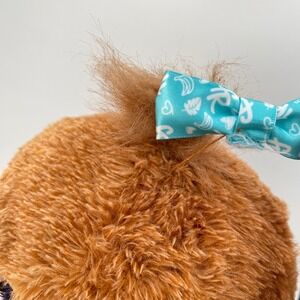 FurReal Peanut the Playful Monkey interactive plush toy from Hasbro features soft brown fur and large, expressive purple eyes with long lashes. This animated primate comes with a charming blue bow accessory and is designed for engaging play with various movements and sounds. The battery-operated base is located on the feet, and the original manufacturer tags are attached, dated 2024.
