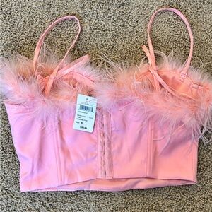 New With Tags! Windsor Top - Corset Boning - Marabou feather trim - Adjustable and removable straps - Hook-eye closure - Padded bust and underwire support