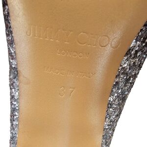 Jimmy Choo Romy Champagne Coarse Glitter Silver Stiletto Heels Pointed Toe Sz37