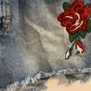 Blue Denim Shorts with Floral Embroidery
