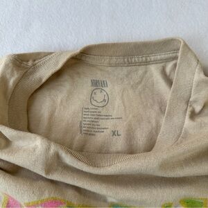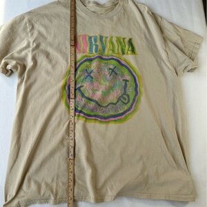 Nirvana t shirt, band tee XL, tan graphic tee, tie dye logo shirt, 100% cotton band shirt, oversized rock tee, grunge style top, unisex band t-shirt