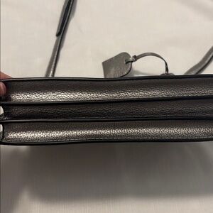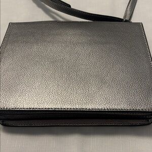 Elegant silver crossbody bag perfect for any occasion. Features a sleek design with a comfortable strap. This is used has some wear but overall good shape has side magnetic closure and zipper really nice bag
