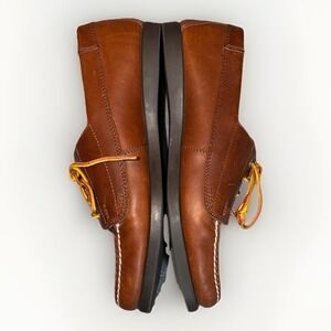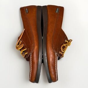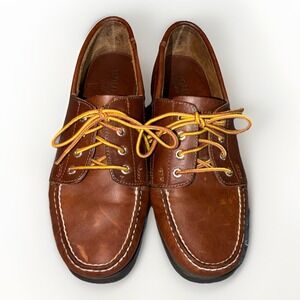 These women's Eastland Falmouth Camp lace-up leather moccasins/loafers are pre-owned and in very good condition. The leather is in good condition, but there are some light markings on the front. The insoles and outsoles are clean and in great condition. The tip of one of the laces has come undone, but they still tie fine. They can easily be replaced. These are women's US size 10M.