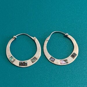 Vintage Sterling 925 small hoop earrings with abalone inlay