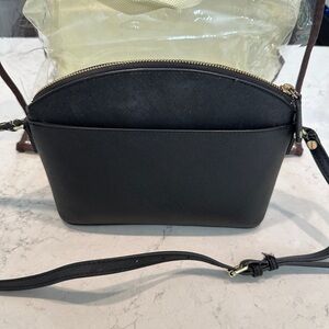 Chic crossbody bag with gold accents. Perfect for everyday use. Compact and stylish design.
