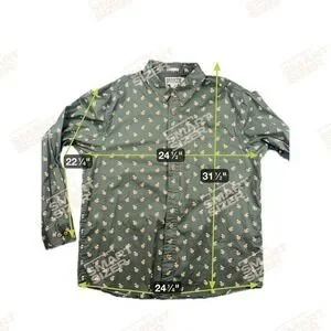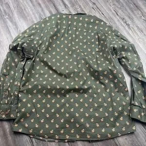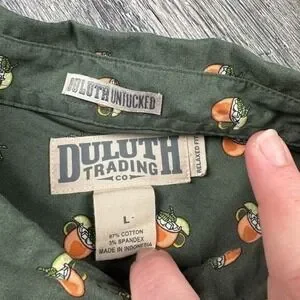 Duluth Trading Company Men's Large Relaxed Fit Long Sleeve Button Down Mule. This shirt is so awesome with the mules drinks all over. Measurements are approximate. No issues. Has a microfiber on bottom shirt.