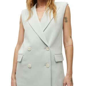 Stylish sleeveless double-breasted blazer vest in a beautiful mint green color. Features button details and a sleek design. Perfect piece for spring!