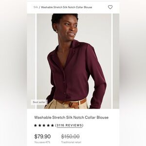 Quince Burgundy Silk Notch Collar Blouse