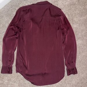Elegant silk blouse with notch collar. Rich burgundy color. Perfect for any occasion. Size small.
