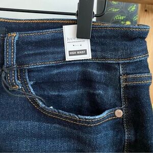 Awesome women’s Judy Blue Palm Bay Exposed Button Fly High Rise Denim Shorts.