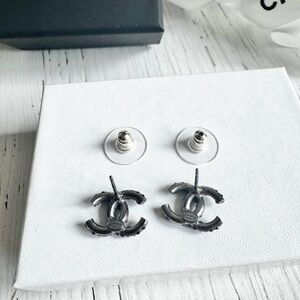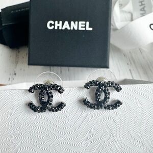 Gorgeous CC stud earrings made from ruthenium metal and black crystals