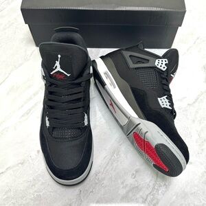 Brand New Retro 4 Black Canvas -Men’s Black/Gray Sneakers Shoes w/ Red Accents