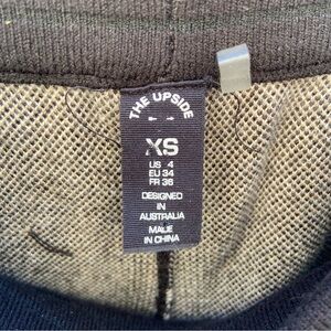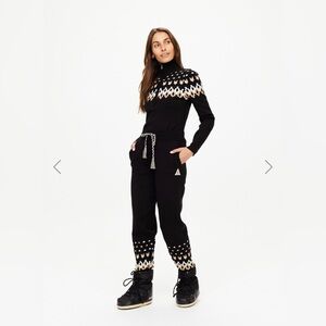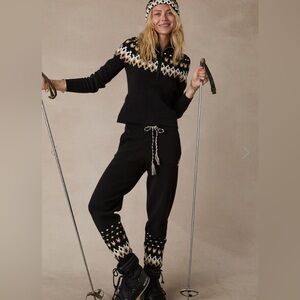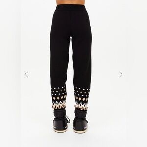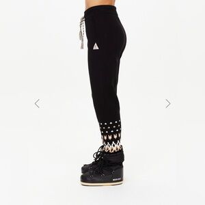The Upside Fairbanks JoJo Knit Joggers. Features side seam pockets, ribbed cuffs trimmed with fair isle design, soft knitted waistband with braided drawstring, and thick stretchy material. Size: AUS: XS US: 4 Materials: 85% Organic Cotton 13% Polyamide 2% Elastane