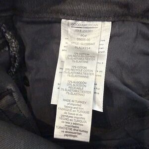 Good American good straight jeans in black 184 but technically darker gray. Button fly with raw hem. Slight stretch