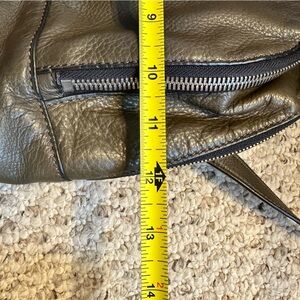 With a solid pattern and dark gray exterior color, this medium-sized bag is made of high-quality leather and features brass hardware. The bag has a zip closure and an adjustable shoulder strap, making it perfect for everyday use.