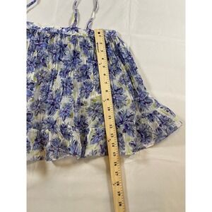 En Saison Blue Odessa Floral Pleated Babydoll Cami Top Ruffle Hem Womens Medium