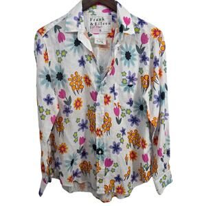 Frank & Eileen Eileen Classic Linen Hot Pink Floral Button Up Shirt Size Small