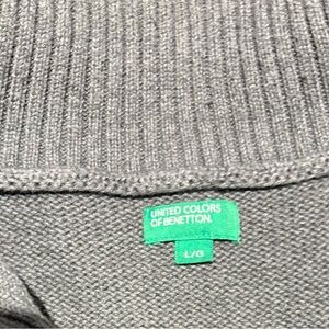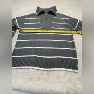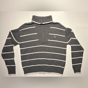 United Colors Of Benetton Grey and White Striped Quarter Zip-Up Sweater