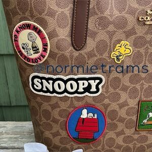 Coach X Peanuts City Tote In Signature Canvas With Patches Bag Purse