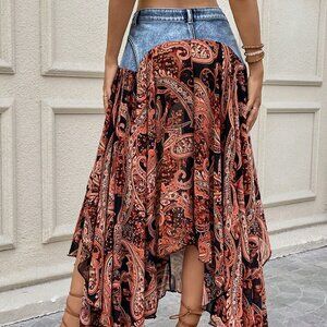 Medium Wash Boho Women's Denim Mid-Length Skirt