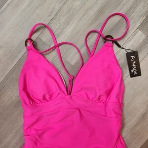 Neon pink swimsuit women's L one piece swimwear strappy beach pool summer new with tag