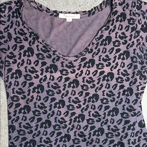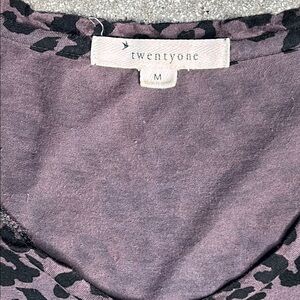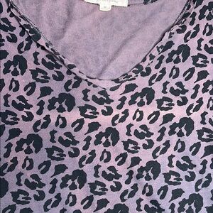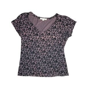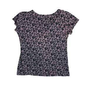 Forever 21 Stylish leopard print V-neck top in a chic black and gray color scheme. Perfect for casual outings or working out. The item is from an outdated collection, 2008- 2010 collection- hence the old y2k logo. The item has some wear and tear as in color fading/ discoloration. A small hole as seen in photos. There is also loose threading. The item is also a lil stretched out but a nice loose fit, great for working out. Other than that the item has some life left.