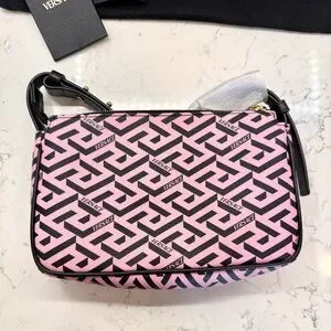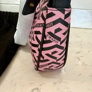 Versace La Greca Signature Shoulder Bag in pink and black — verified authentic (interior NFC tag scannable, shown in photo 4).