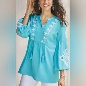 soft surroundings women’s Embroidered & Beaded Blue Marissa Blouse