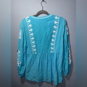 Soft Surroundings Women’s Embroidered & Beaded Blue Marissa Blouse Size L EUC