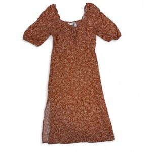 Sincerely Jules orange floral mini dress with tie front and puffy sleeves. Size L, true to size.