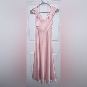 NWT Birdy Grey Blush Pink Satin Midi Dress Bridesmaid Formal Prom Sz XS