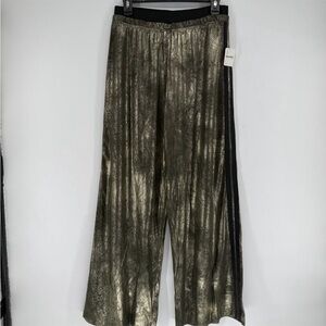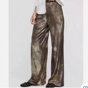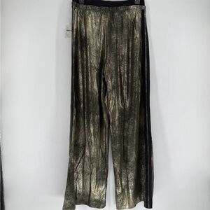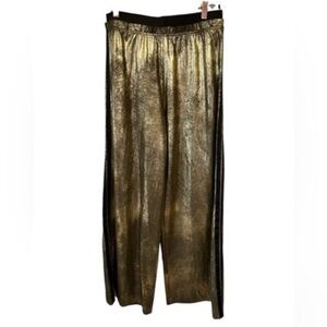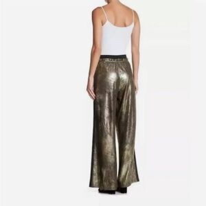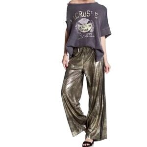 Free People BRUSHED METALLIC BRONZE GOLD SILVER WIDE LEG Track Pants Wide M L