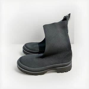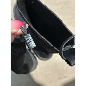 ZARA Women 7 Chelsea Boots Pull On Black Knit Sock Stretch Lugged Soles Combat