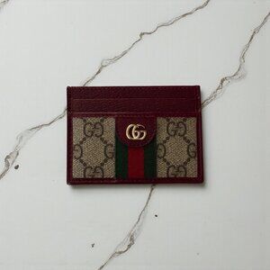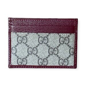 Gucci Ophidia GG Supreme Card Holder Burgundy Leather Trim | NWOT