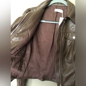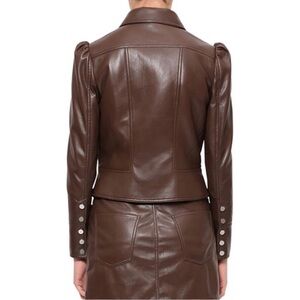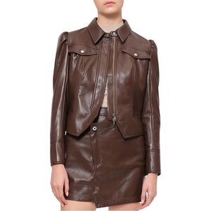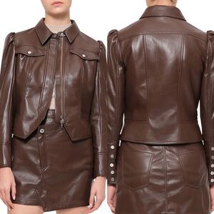 NWT Jonathan Simkhai Wyatt Vegan Leather Coffee Brown Puff Sleeve Jacket Size XS