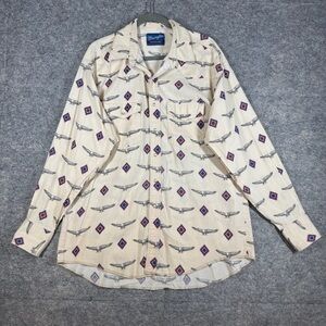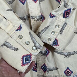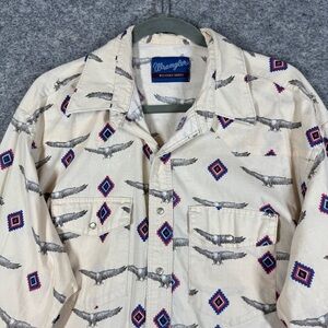 Wrangler Cream Eagle Print Western Shirt Size L Vintage Snap Button Cowboy Top