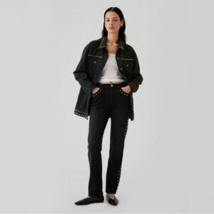 Brand New With Tags! This is the highly-coveted Gap Studded Oversized Icon Denim Jacket in a faded black wash. It combines a classic rocker vibe with a modern, slouchy silhouette.