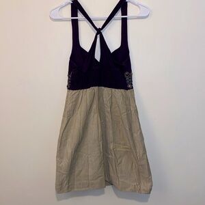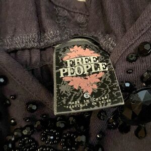 Size 6 Free People Purple/Black/Tan Beaded Cotton Peacock Print Mini Dress. Gently worn-Missing one bead-Great condition! 100% Cotton