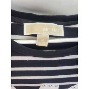 Michael Kors Dress Striped Black White MK Logo Studded Short Sleeve Womens