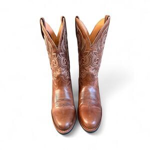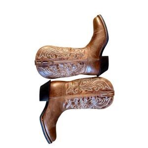 Classic Durango 11” women’s Western boots in rich caramel full-grain leather. Beautiful white embroidery on shaft, R-toe shape, and floral-embossed outsole. Features the comfortable Durango Suspension System for all-day wear and a timeless Western heel. New never worn no tags.
