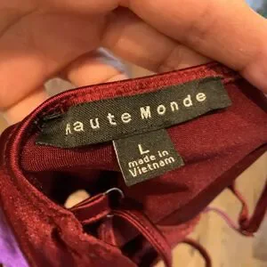 Haute Monde Structured Bodysuit Sz L Cut Out Burgundy Whimsigoth Punk Sexy EUC