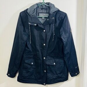 Eddie Bauer Women's Charly Waterproof Black Rain Jacket Side Pockets Size Medium
