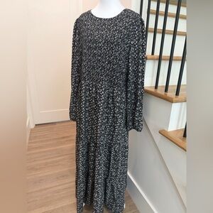 Elegant long-sleeve dress with floral pattern. Perfect for casual or formal occasions. Comfortable and stylish.