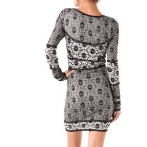 Free People Eyelet Knit Fitted Dress Black White Long Sleeve Lined Women's S