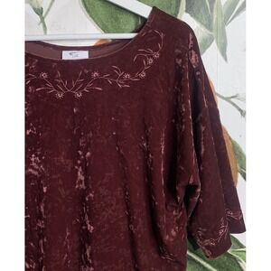 J Jill Medium Velvet Burgundy Embroidered Neckline Short Sleeve Blouse