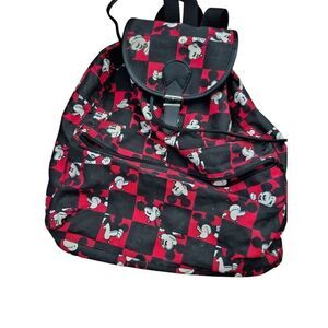 DISNEY Mickey Mouse Backpack Black And Red Checker Pattern With Mickey Mouse
