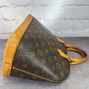 Beautiful classic Alma in very good condition for its age. See photos. There are watermarks to the leather but the leather is actually in very good condition. No major staining, minor water marks and surface scratches. Some darkening to the handles from carry. Interior is also very clean.