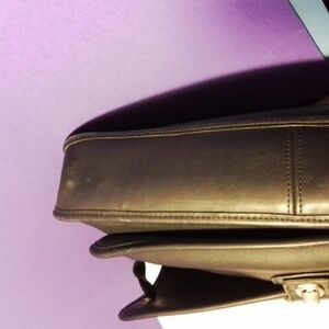 Sleek black leather design with silver hardware. Ideal for business and travel. Features a sturdy handle and secure closure. She has lived a life before I found her. She still has a lot of life to live. she has been used as seen in pictures. It has its original Coach hangtag. This bag is similar to the briefcase used In the movie "The devil wears Prada 2". This bag is timeless and you need this bag for 2026. It is totally vintage from the 90s. it's a must have bag of the year..they even used 1 that looks like this in a fashion movie,,HOLLYWOOD..THE BUZZ IS SWIRLING ABOUT THIS BAG. ..TAKING OFFERS