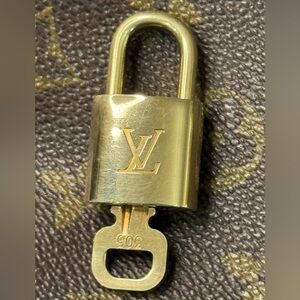 Authentic Louis Vuitton brass lock and key #305. Pre-owned. Minor surface scratches. See photos and ask any questions as needed.