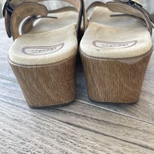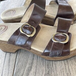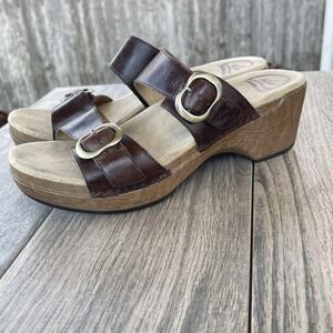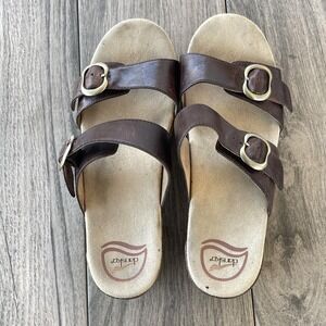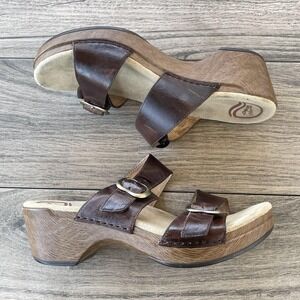 Dansko Wedge Sandals Women US 8.5 / EU 39 Brown Leather Buckle Strappy Slide Comfort Shoes